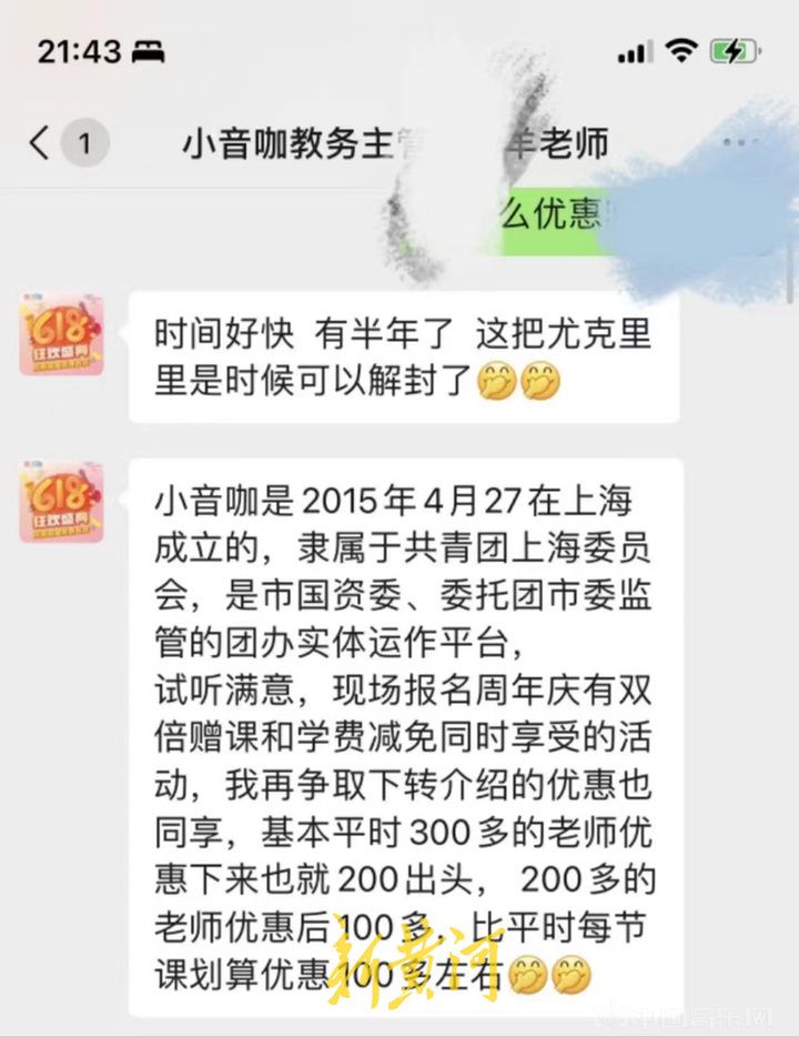 音乐教培机构“小音咖”暴雷?百万粉丝大V称涉事金